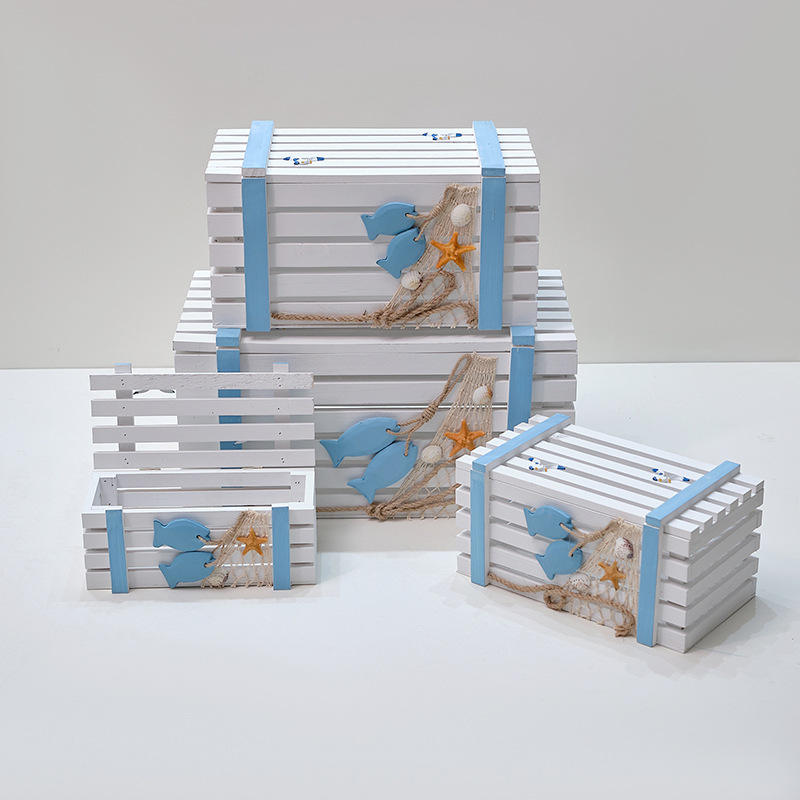 Mediterranean Style Wooden Storage Box Set Of Three Rectangular Pine Stackable For Living Room Neatening