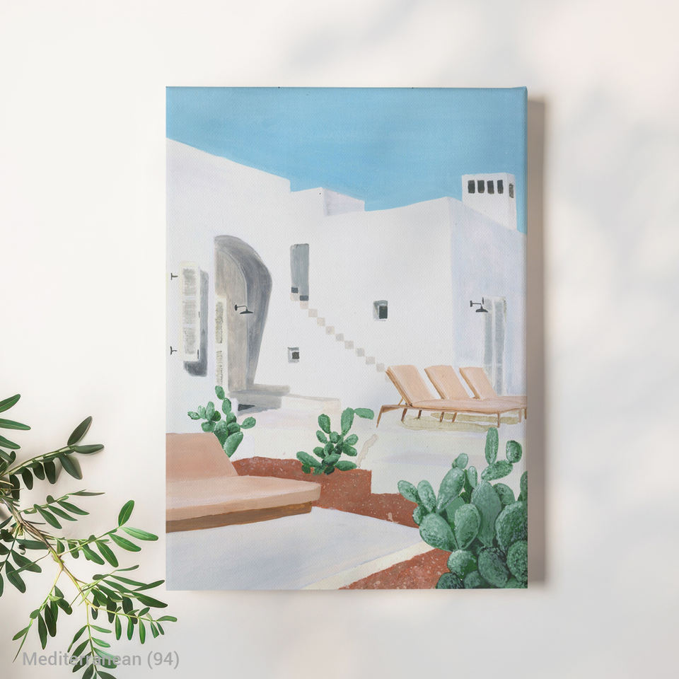 Modern Mediterranean Terrace White Villa Tropical HD Canvas Art with Wood Frame