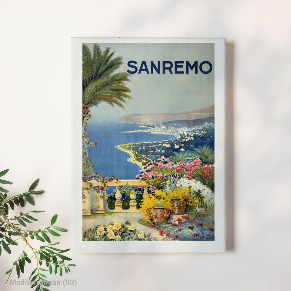Modern Mediterranean Tropical Garden Ancient Villa Premium Canvas Art with Wood Frame Wholesale Decor