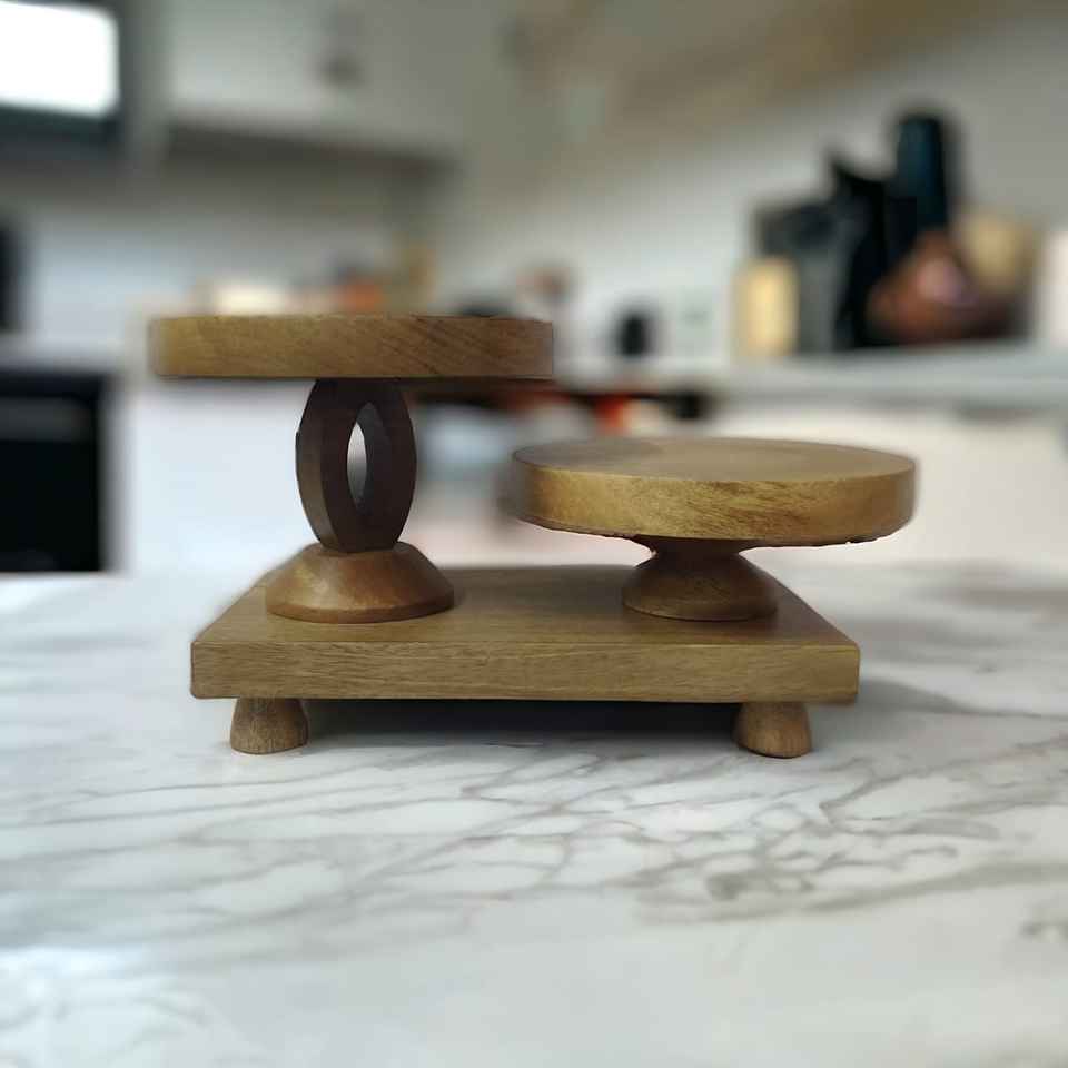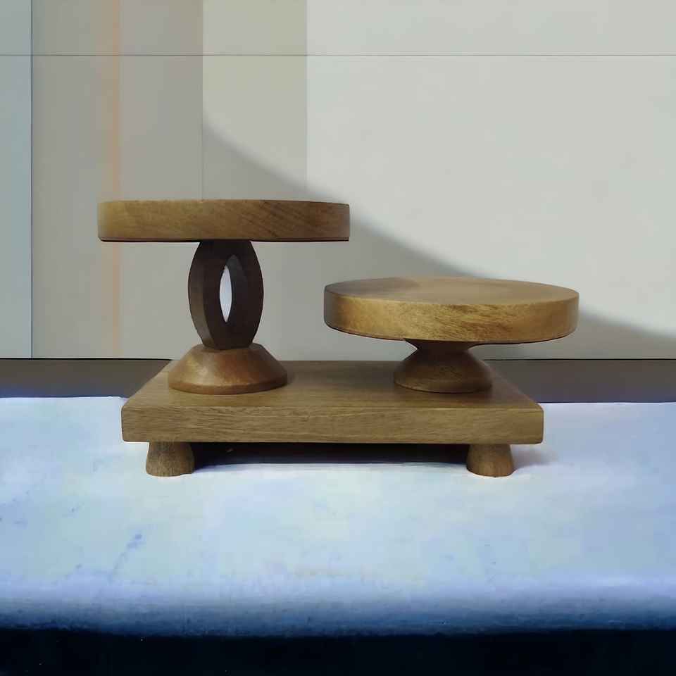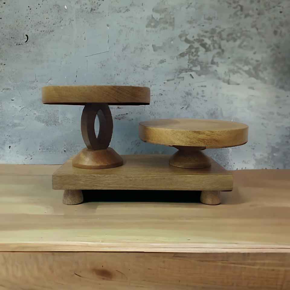 Medium Antique Vintage Mango Wood Hand Carved Eco-Friendly Cake Stand Natural Dessert Display for Wedding Restaurants Cake Tools