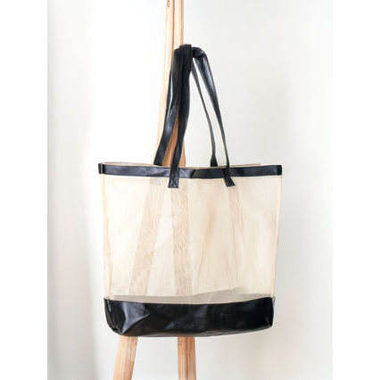 Medium Cotton Mesh Bag Eco-Friendly Reusable Beach Handbag with Letter Printing for Daily Use