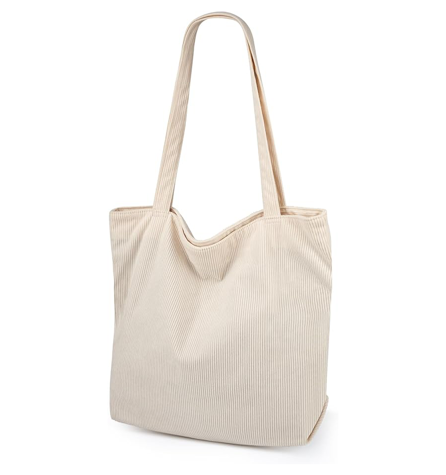 Medium Size Custom Logo Eco-Friendly Corduroy Woven Tote Bag Recyclable Canvas Carry Bag Letter Pattern for Ladies Reusable