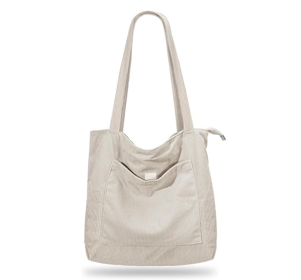 Medium Size Custom Logo Corduroy Woven Tote Bag Eco-Friendly Recyclable Canvas Carry Bag Letter Pattern Ladies Shopping Bags