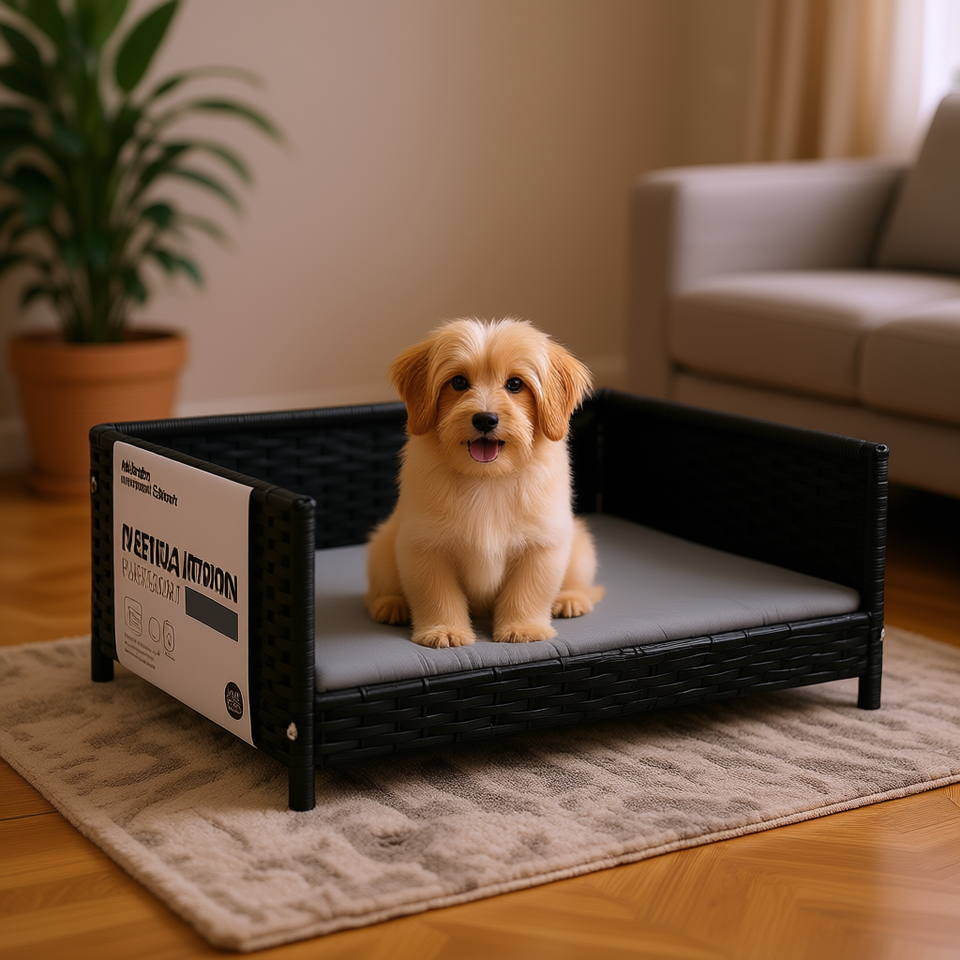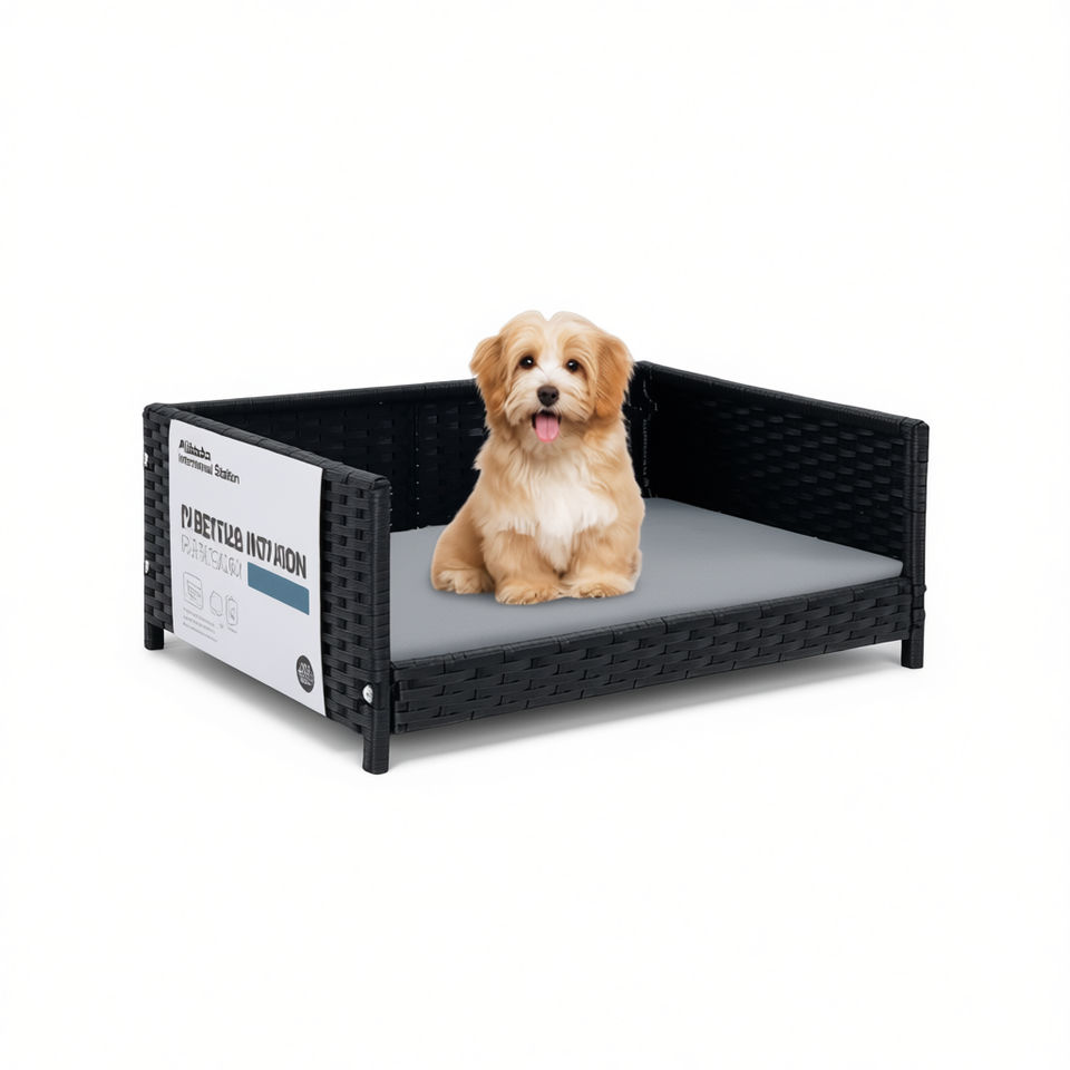 Rattan Dog Bed Gray Medium Size Waterproof Cushion Indoor Pet Bed for Dogs and Cats Modern Style Rectangle Shape