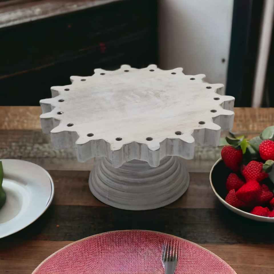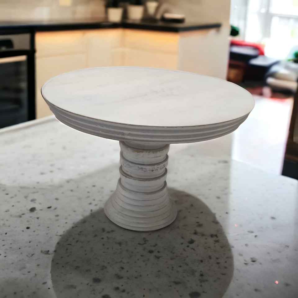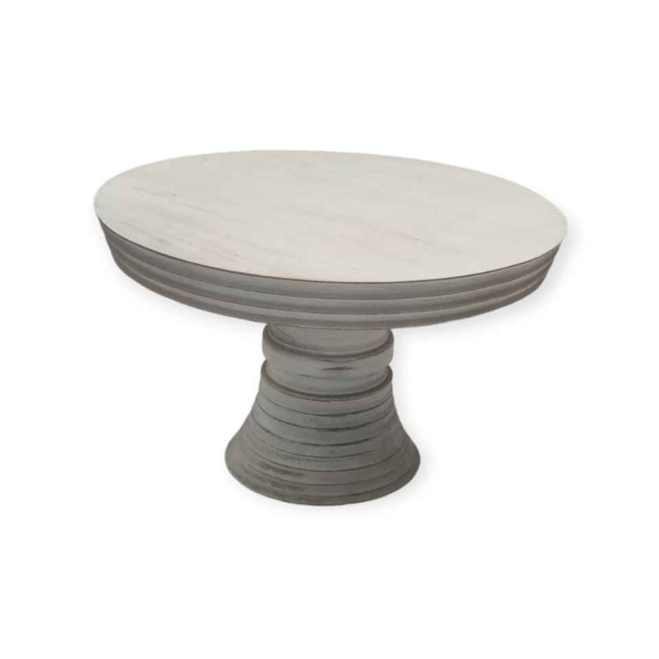 Medium White Antique Vintage Farmhouse Mango Wood Hand Carved Eco-Friendly Dessert Cake Stand Natural Wedding Cake Tools