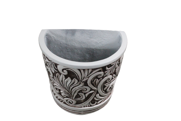 Medium White Fiberglass Resin Modern Designer Half Engrave Planter Lightweight Outdoor Indoor Home & Garden