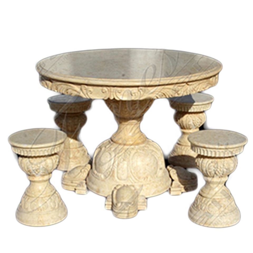Medium-high pedestal natural garden decorative Solid Rock White stone handcarved Artificial stone dining table