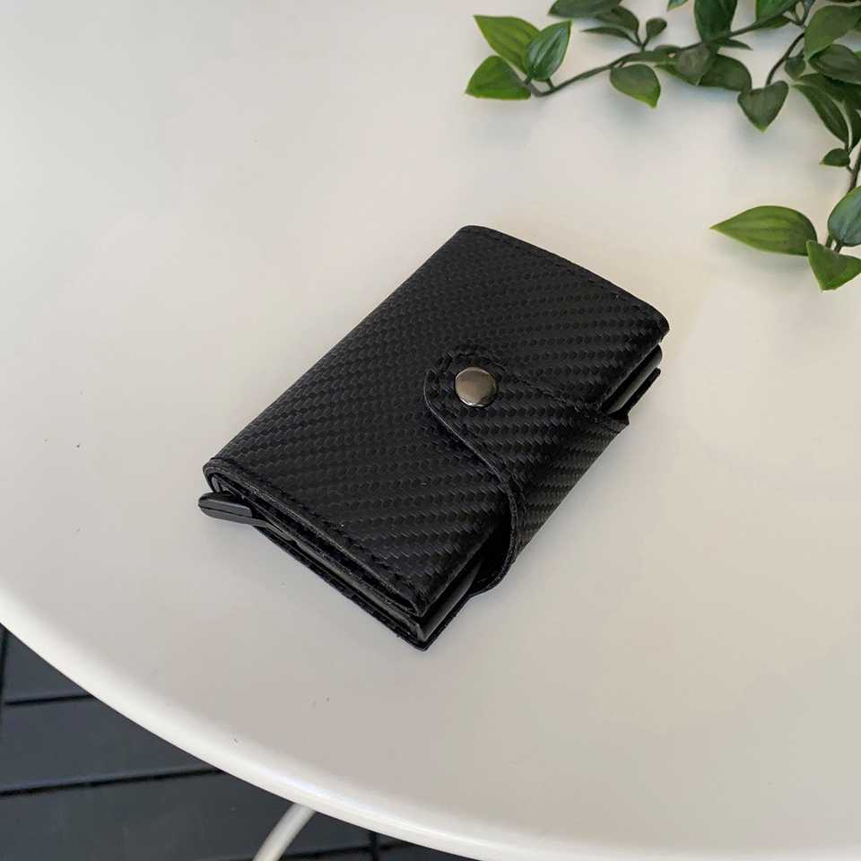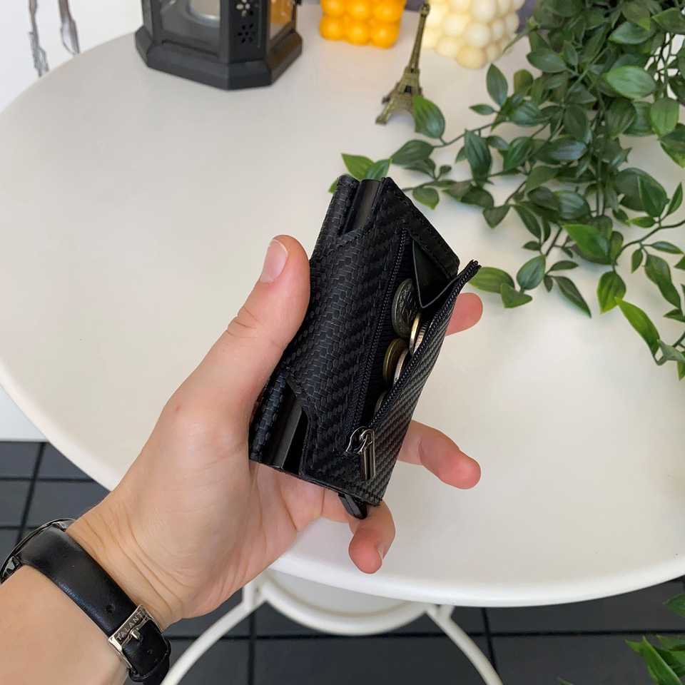 Medusa - Carbon Fiber Leather Mechanism Smart Wallet Zippered Coin Compartment RFID Blocker