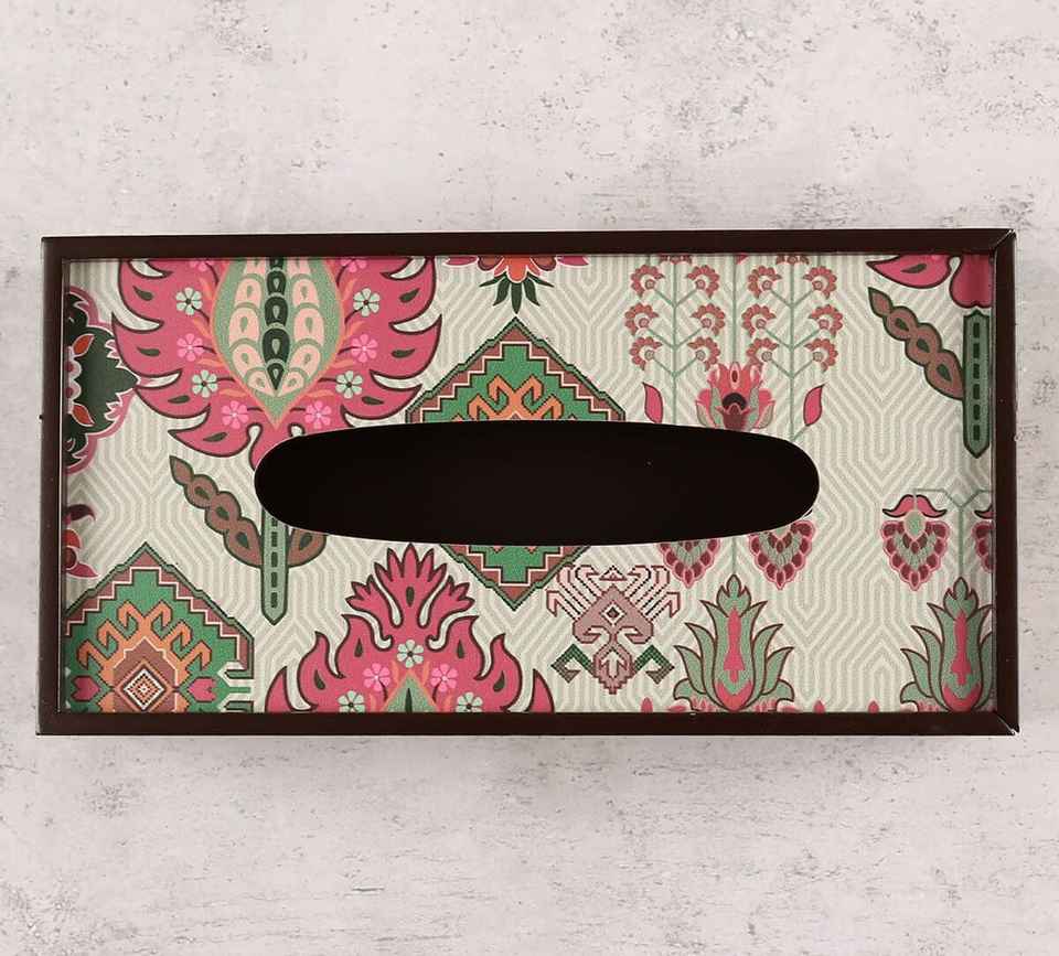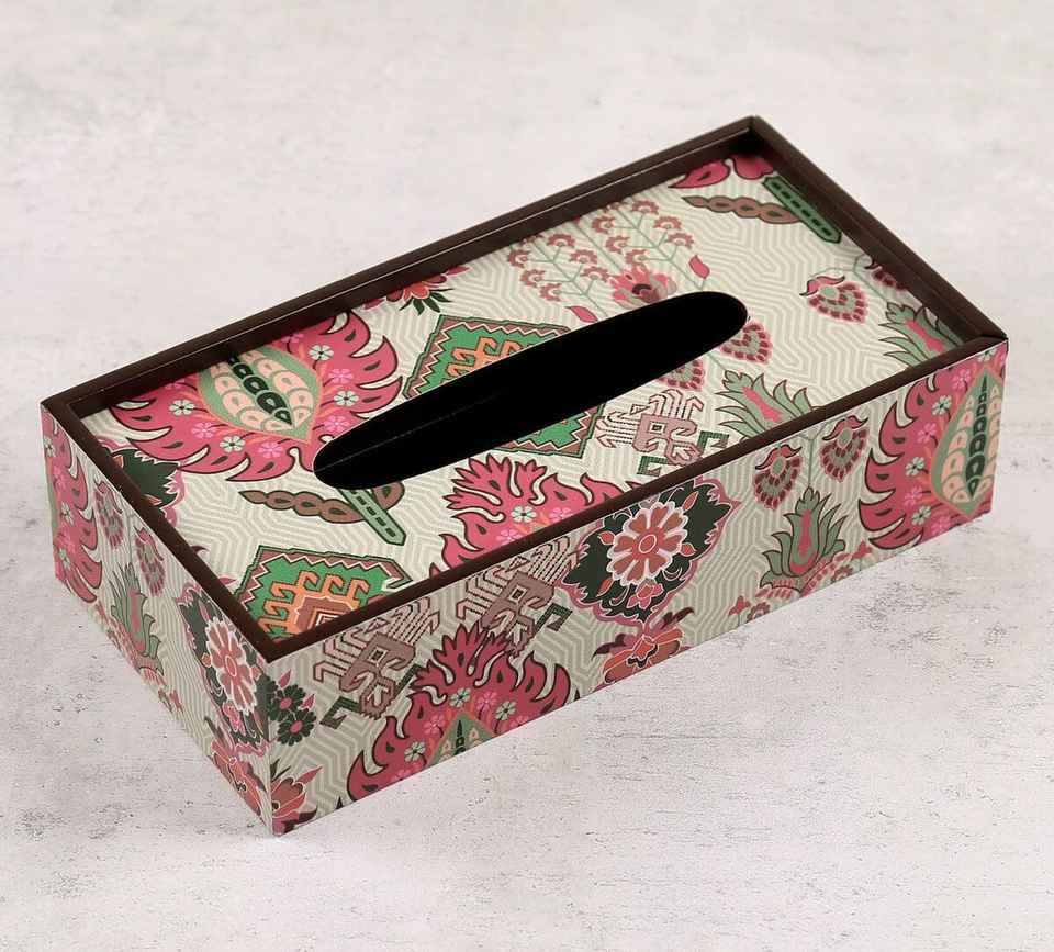 Meena Floral Pattern Resin Tissue Box Holder for Bathroom and Dressing Table Functional and Decorative Wooden Design