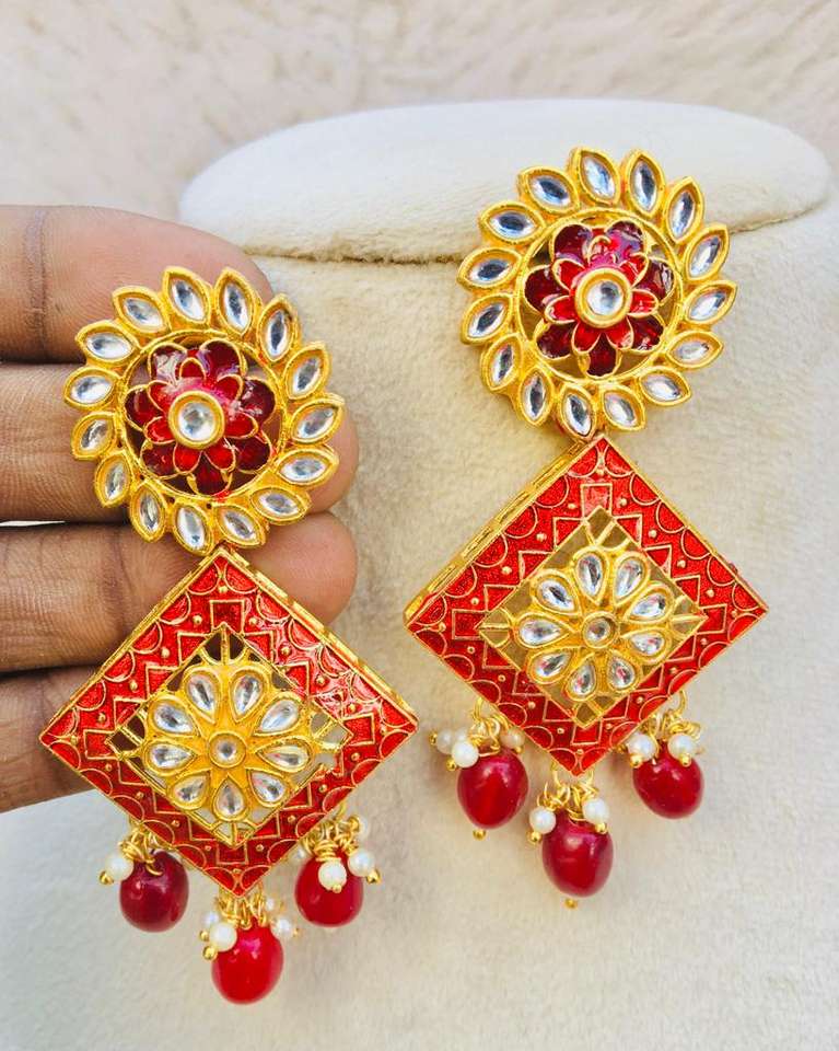 Meenakari Circle and Square Shape Unique Earring Set Colorful Allure Sculptural Beautiful Earring Segt