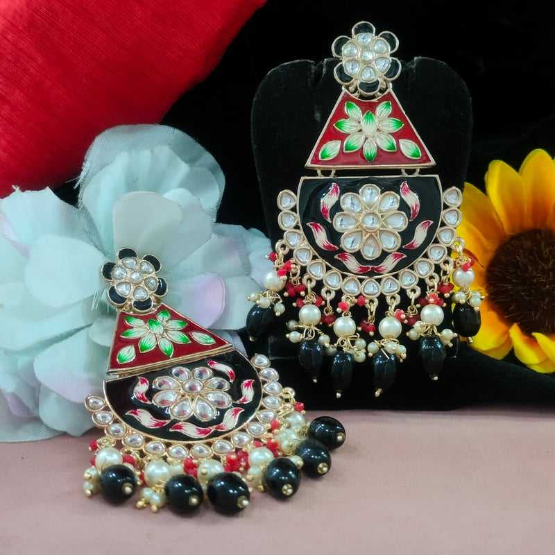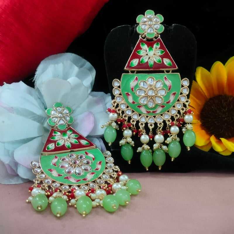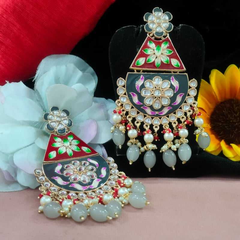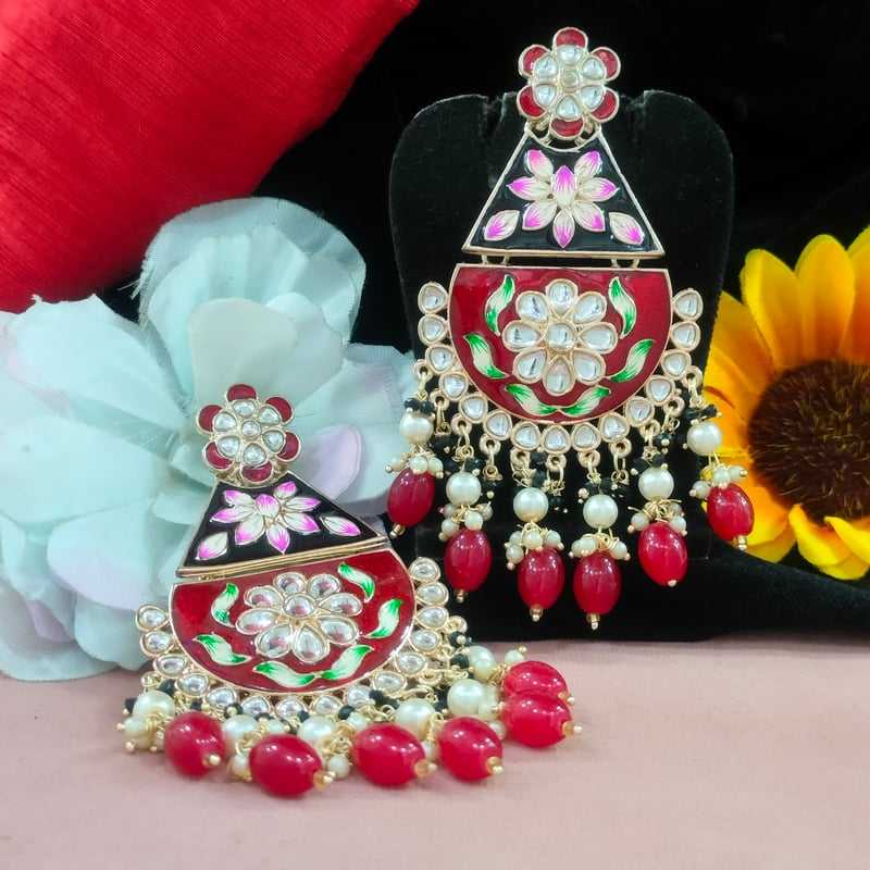 Meenakari Fusion And Kundan Earrings for Girls Pearls Hanging Hand Painted Enamel Work Traditional Artistry Contemporary Flair