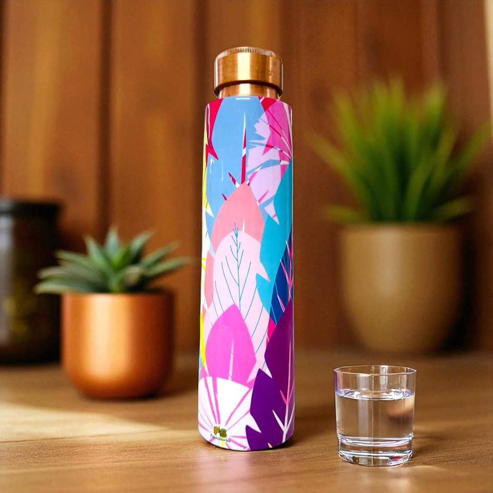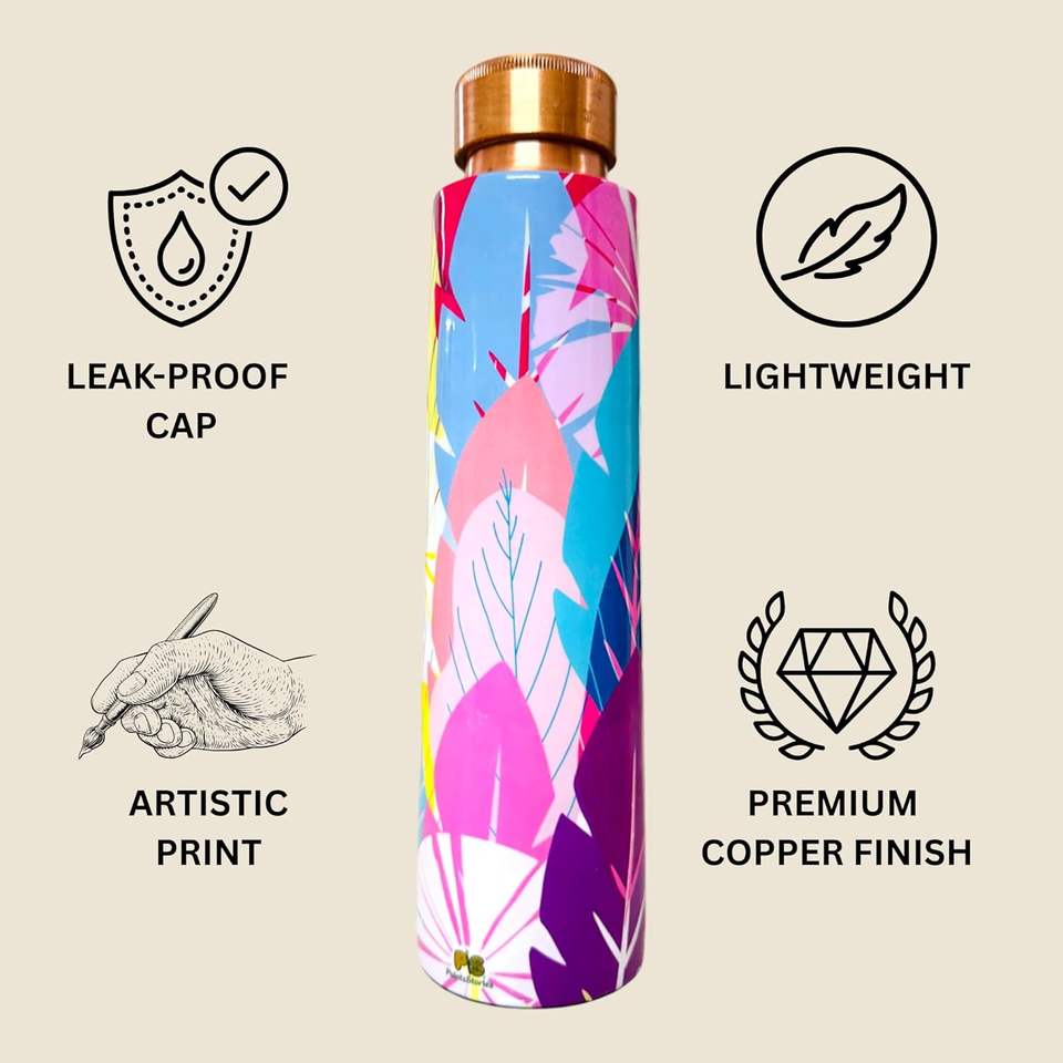 Meenakari Printed Copper Bottle for Office & HomeCopper Ayurvedic Bottle Print Pure Copper Water Bottle DesignLeakproof