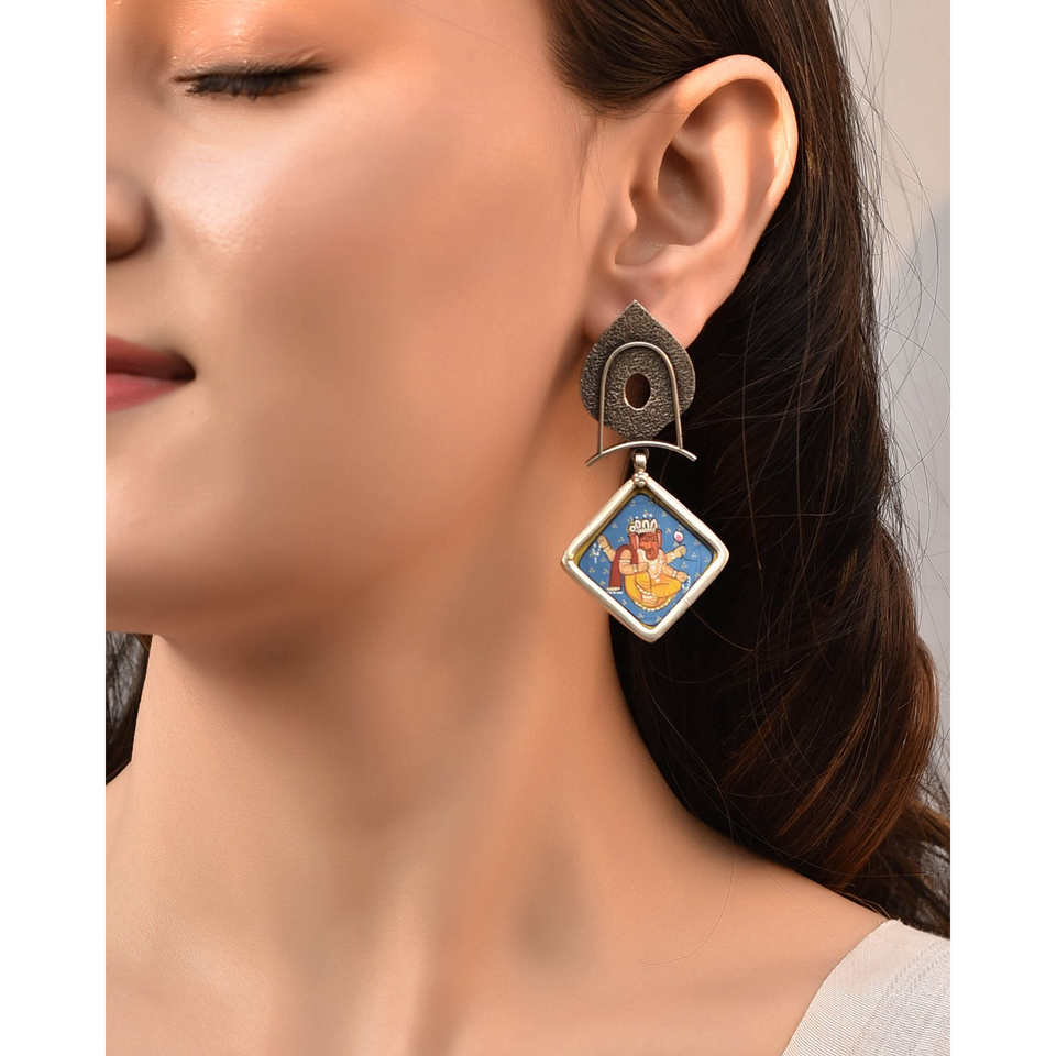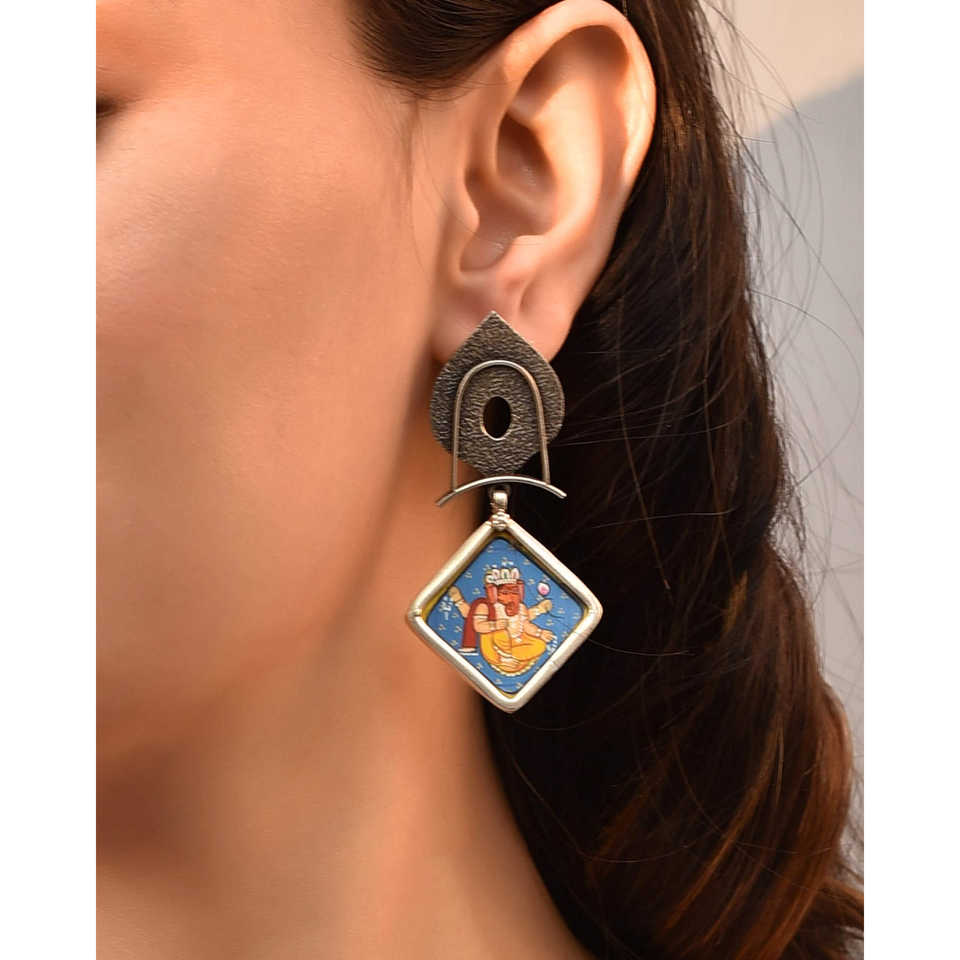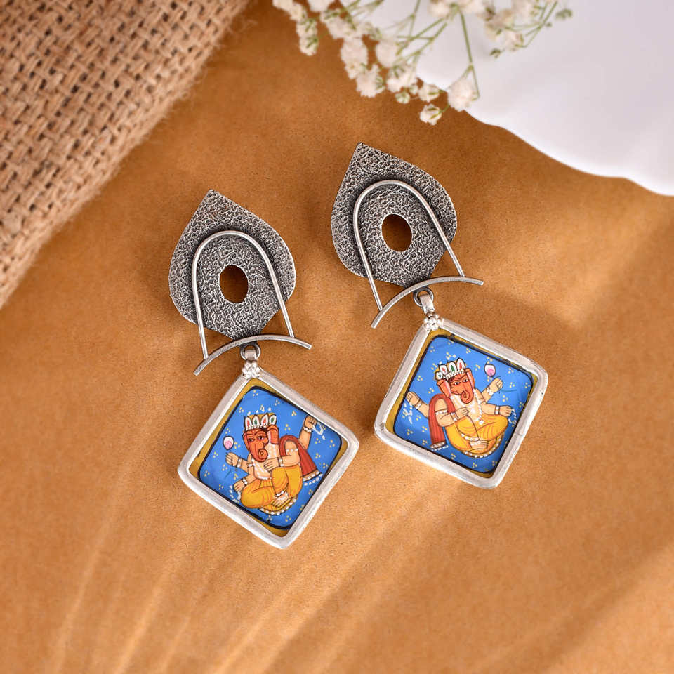 Meera Jaipur Ganesha Silver Painting Fashion Earrings