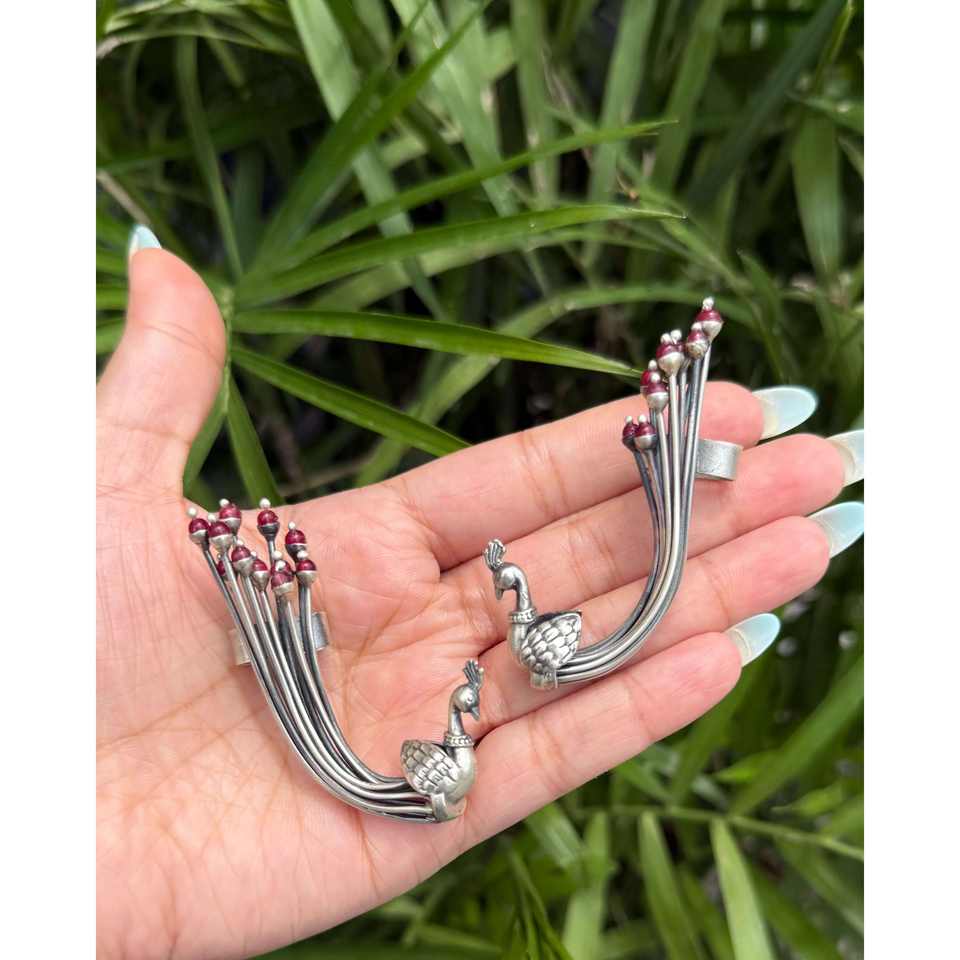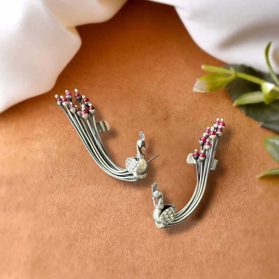 Meera Jaipur Peacock Fashion Cuff Earrings-Elegant and Eye-Catching Accessory
