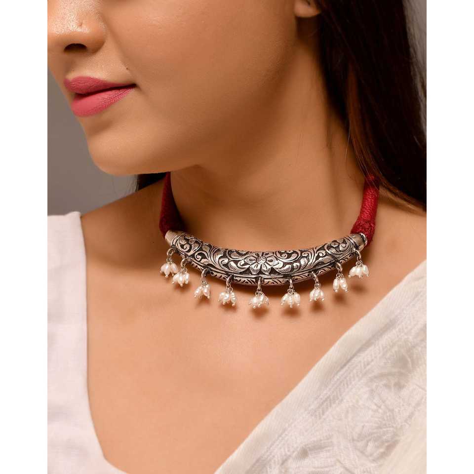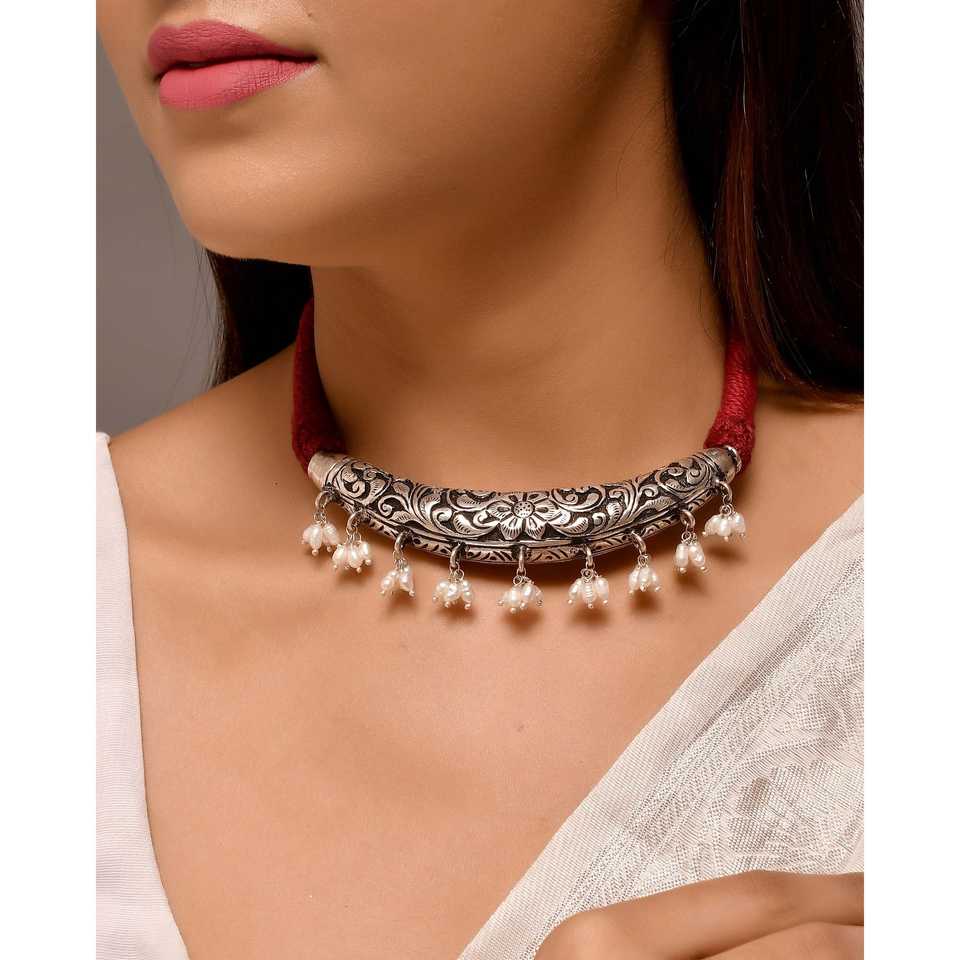 Meera Jaipur Shankh Silver Necklace with Pearl Elegant and Stylish Jewelry