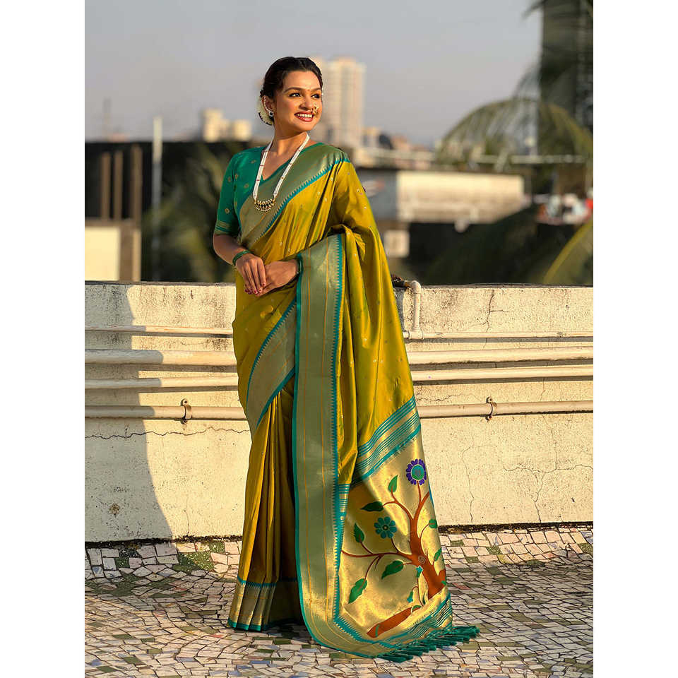 Mehendi Green Soft Silk Paithani Zari Woven Ethnic Saree Shawl with Intricate Indian Design