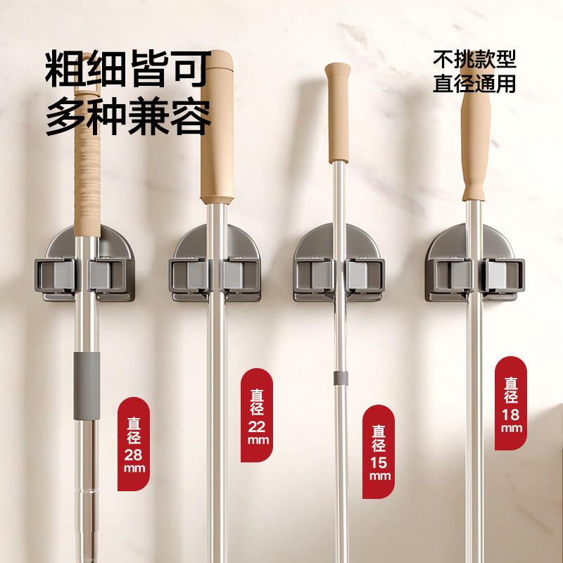 Meiruide Mop Holder Gun Gray Rectangular Suction Cup Wall Mount Clip For Home Space Metal Pole Storage
