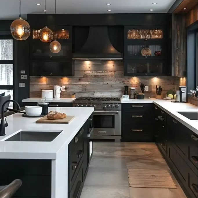 Modern Kitchen Shaker Style Apartment Ready Set Solid Wood Carcase Stainless Steel Melamine Board Glass Sink Backsplash American