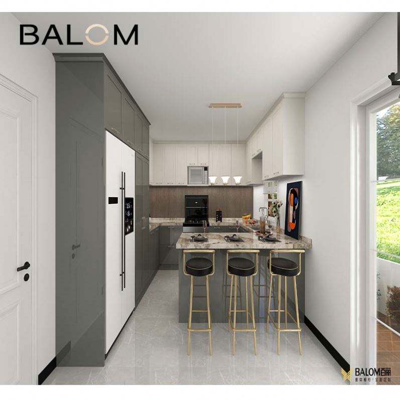 Melamine Laminated MDF Kitchen Cabinet U Shape Flat Pack Acquer Kitchen Units