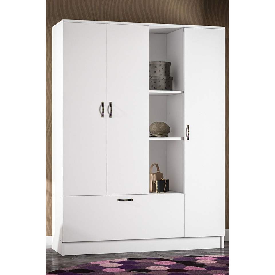 Melisa Freestanding Wooden Wardrobe 3-Door with 3 Open Shelves White Modern Storage for Home & Hotel Folding Feature for Clothes