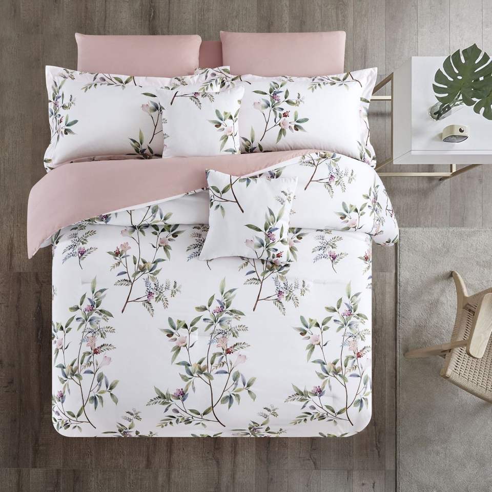 Melissa | Modern Solid 8-Piece King Comforter Set 260x240 cm White & Rose Pink Luxury All-Season with Massage