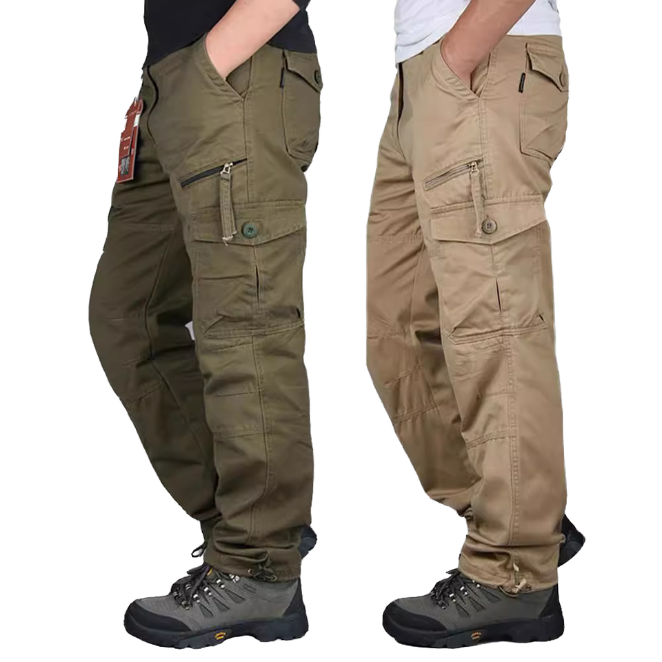 Men 100% Cotton Tactical Pants Multi-Pockets Cargo Casual Trousers Working Hiking Hunting Front Flat Mid Safari High Waterproof