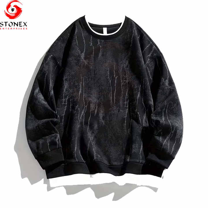 Men Acid Wash 100% Cotton Long Sleeve T-Shirts Quick Dry Breathable Eco-Friendly Casual Regular Fit Solid Customized Logo Design
