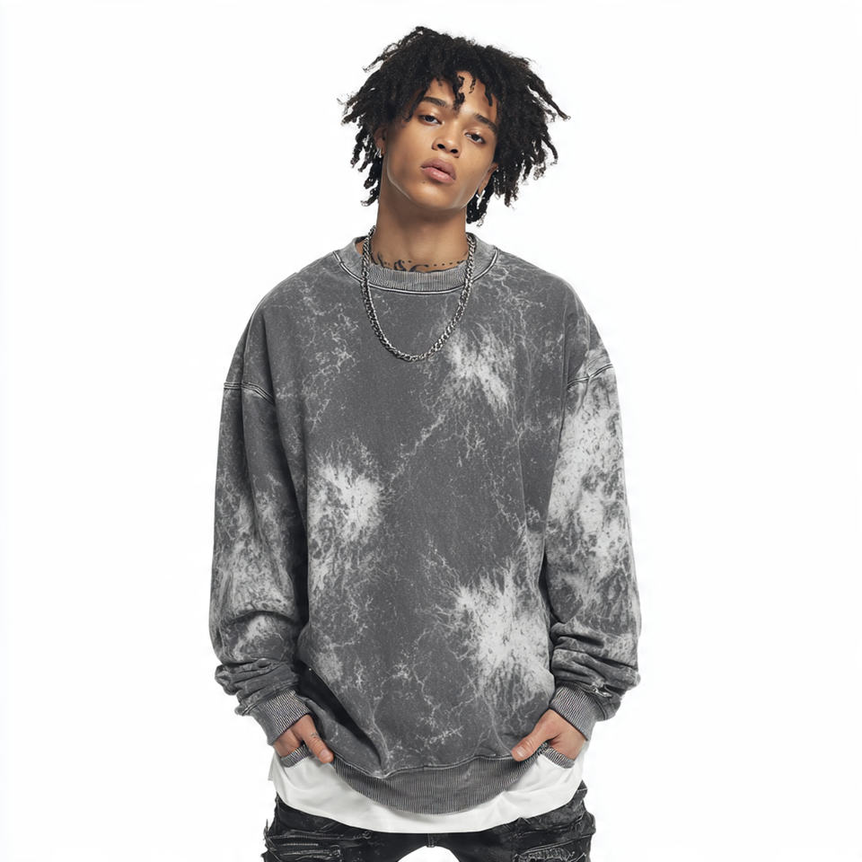 Men Acid Washed Sweatshirt Drop Shoulder Crew Neck Sweat Shirt Men's Winter Streetwear Vintage Wash Baggy Sweatshirts Mens