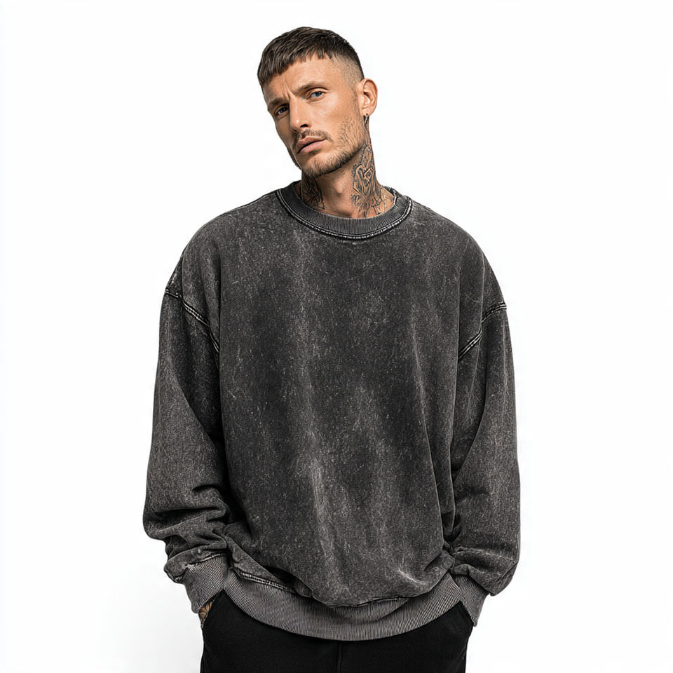 Drop Shoulder Vintage Wash Sweat Shirts Men