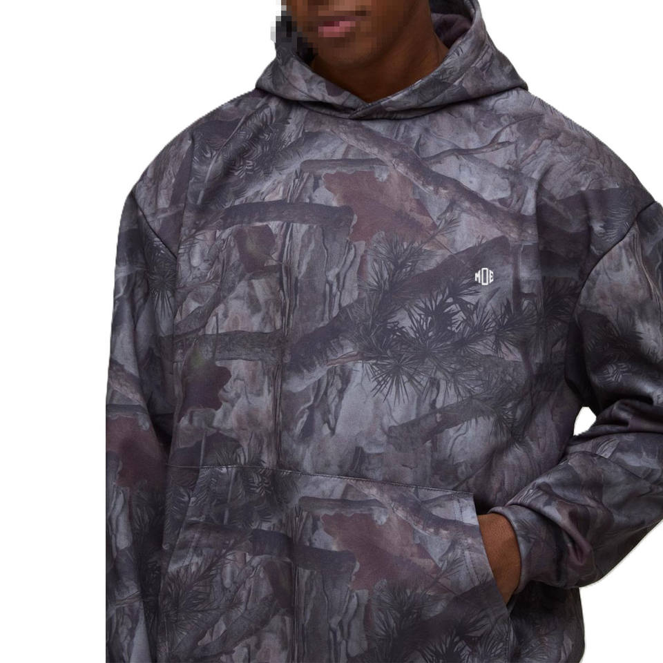 Men All Over Camo Print Hooded Sweatshirt Heavyweight Fleece Long Sleeve Casual Streetwear Top for Wholesale