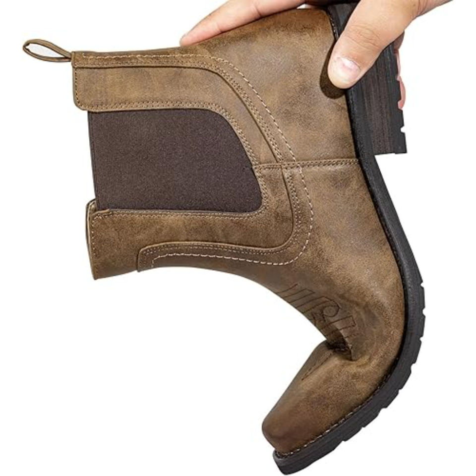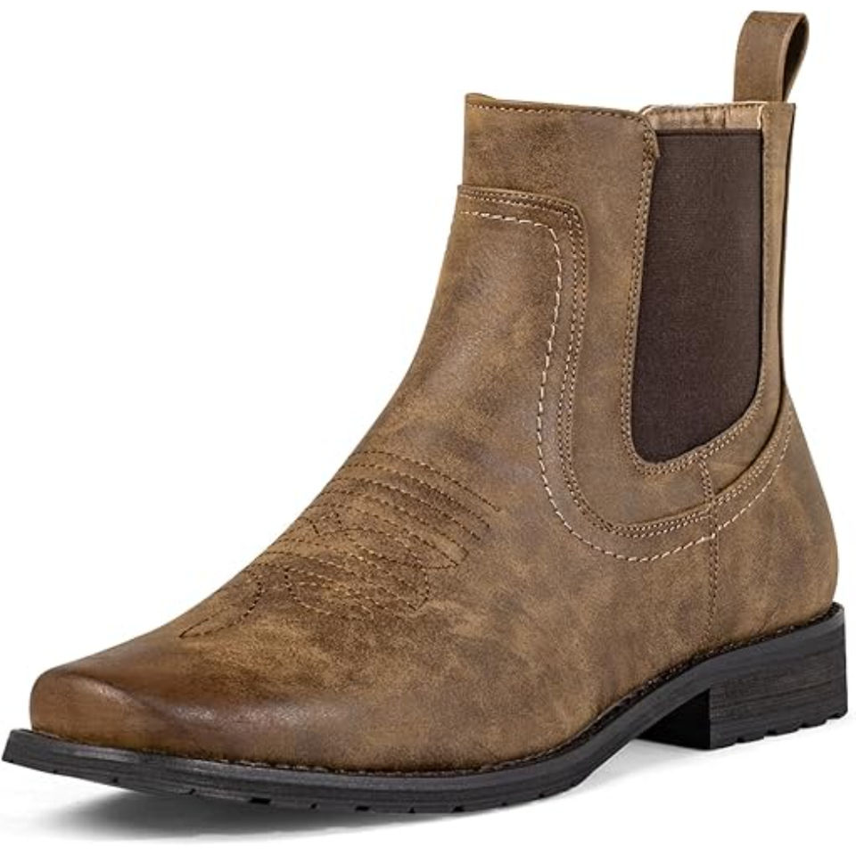 Men Ankle Western Boots Stylish Leather Cowboy Booties Durable Comfortable Classic Western Style Footwear for Daily Wear