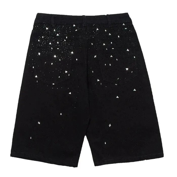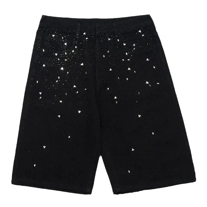 Men Baggy Denim Short With Custom Sparkling Rhinestone Design Pattern Vintage Shorts Plus Size Men Shorts Available Wholesale
