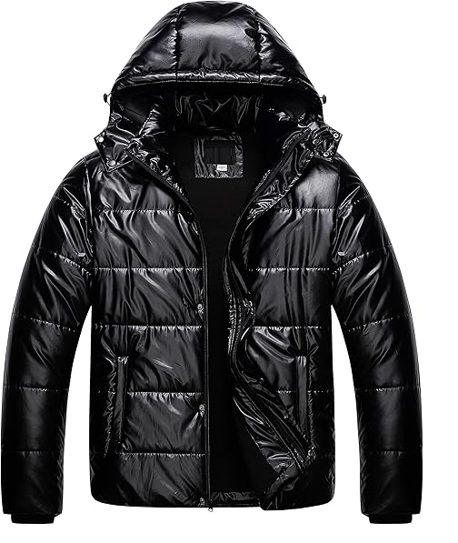 Men Big and Tall Winter Puffer Jacket Waterproof Bubble Coat Puffy Ski Parka With Hood