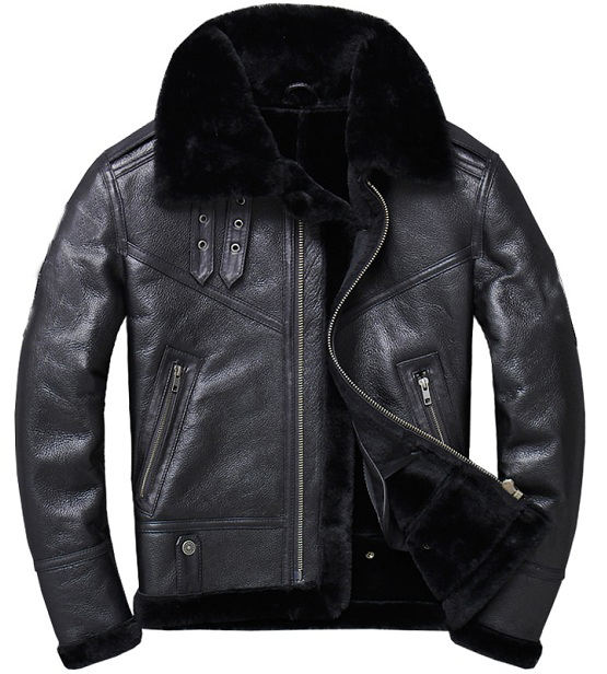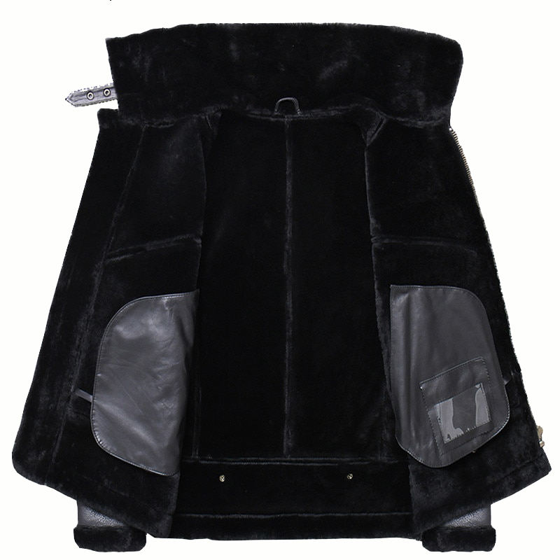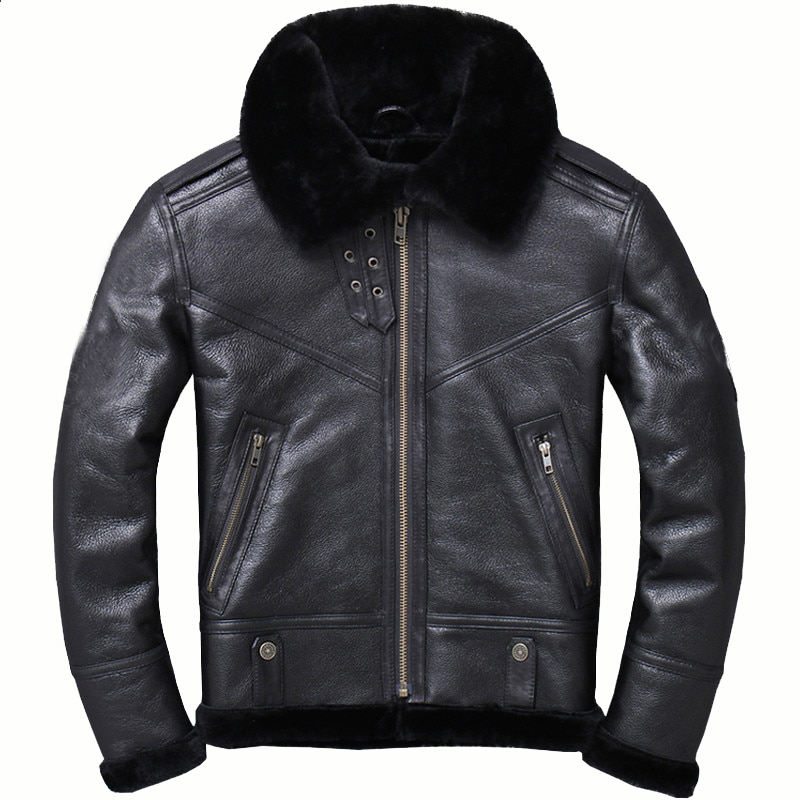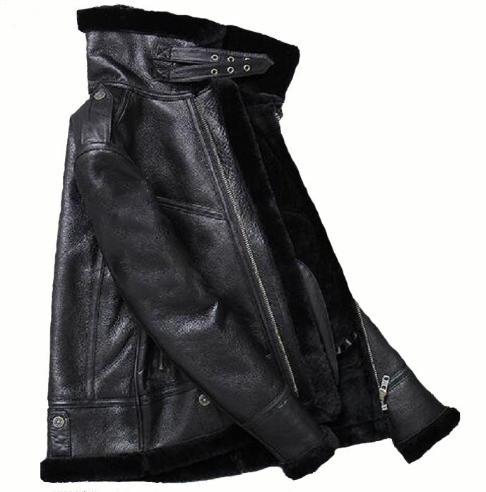 Men Biker Sheepskin Leather Casual Fur Fashion Bomber Genuine Leather Jacket for Men Coat OEM