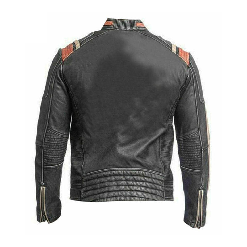 Men Biker Vintage Motorcycle Distressed Brown Cafe Racer Leather Jacket Real Genuine Leather Riders Casual Jacket