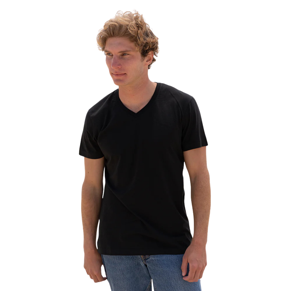 Men Black 100% Luxury Organic Cotton V Neck T Shirt Pre Shrunk GOTS Certified Premium Short Sleeve Breathable Fit Tee