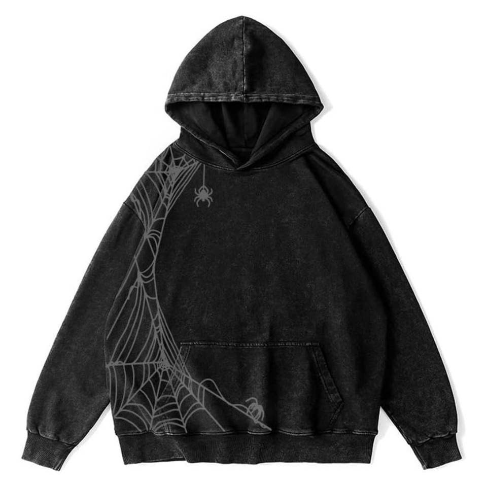 Men Black Acid Wash Hoodie Kangaroo Pockets Loose Fit Men Pullover Cotton Polyester Fabric Vintage Streetwear Hoodies