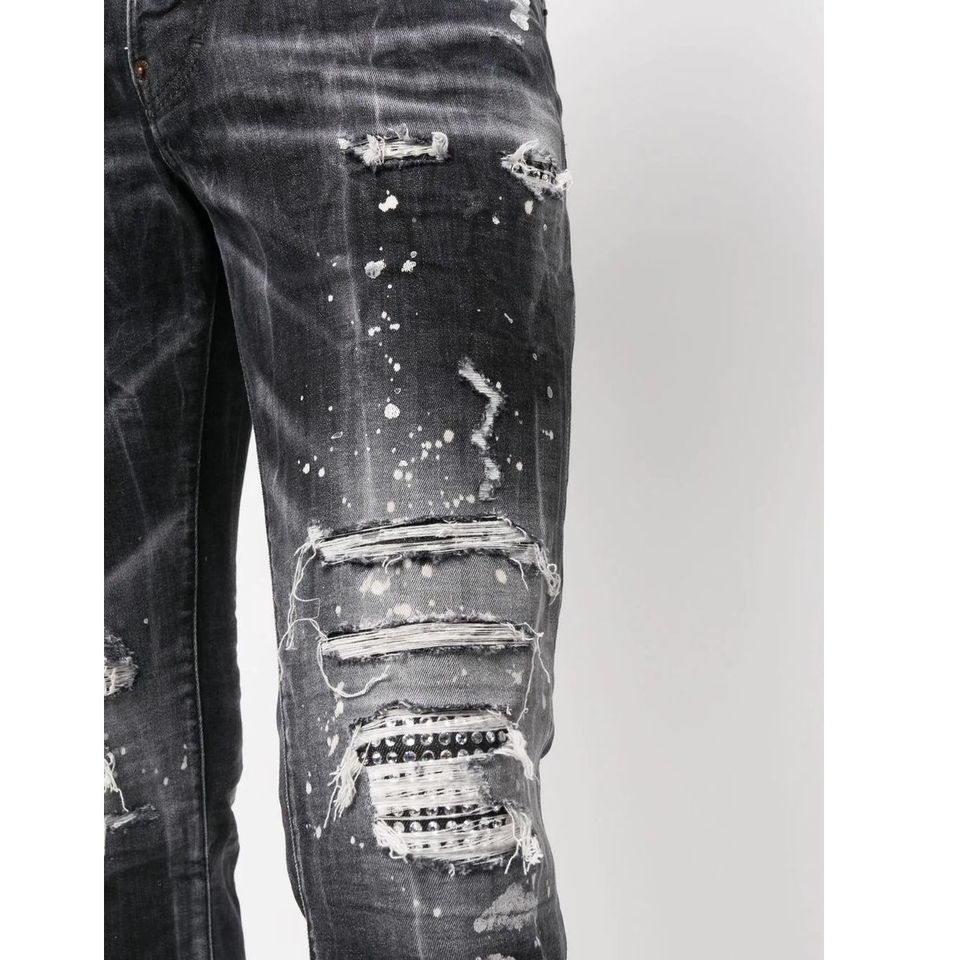Men Black Color Cotton Denim Ripped Straight Leg Fly and Button Fastening Men's Slim Jeans With 5 Pockets and Paints OEM