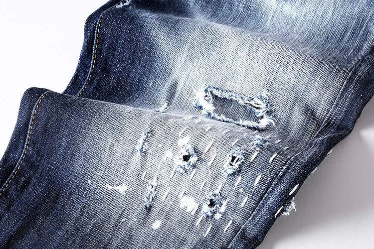 Men Black Grey Distressed Skinny Jeans Ripped Stretch Denim Paint Streetwear High quality Men denim pant