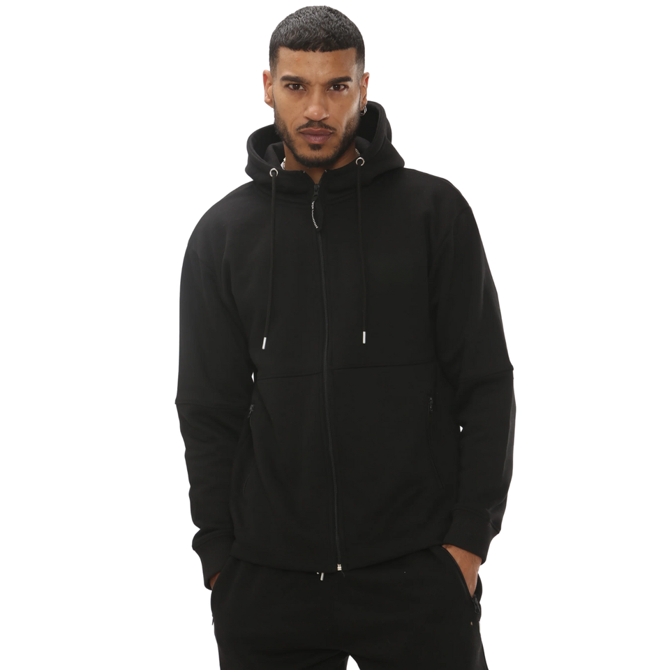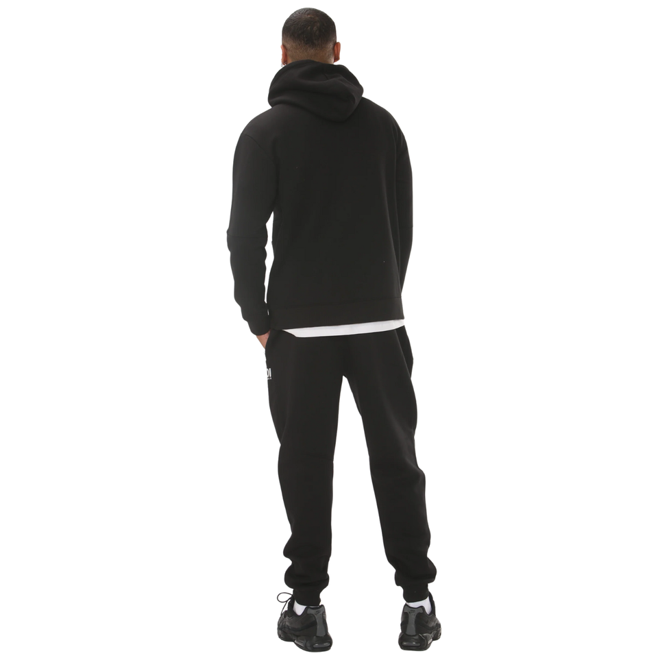 Men Black Hoodie Tracksuit Set Zip Up Jacket And Joggers Casual Fleece Two Piece Outfit Streetwear Winter Warm Fashion Style