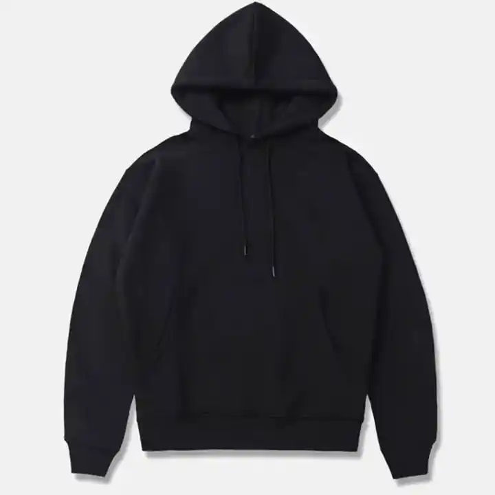 Men Black Hoodies Custom Logo Pullover Hoodies Sweatshirts 100% Cotton Solid Fleece Winter Regular Fit