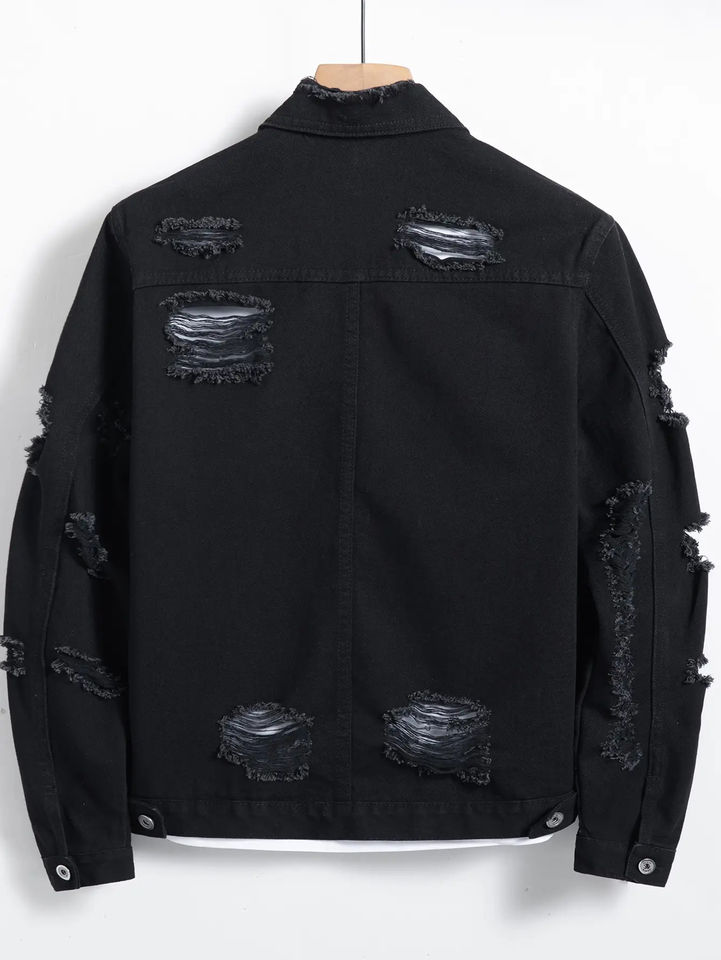 Product name:Men Black Ripped Denim Jacket Spring Autumn Street Style Retro