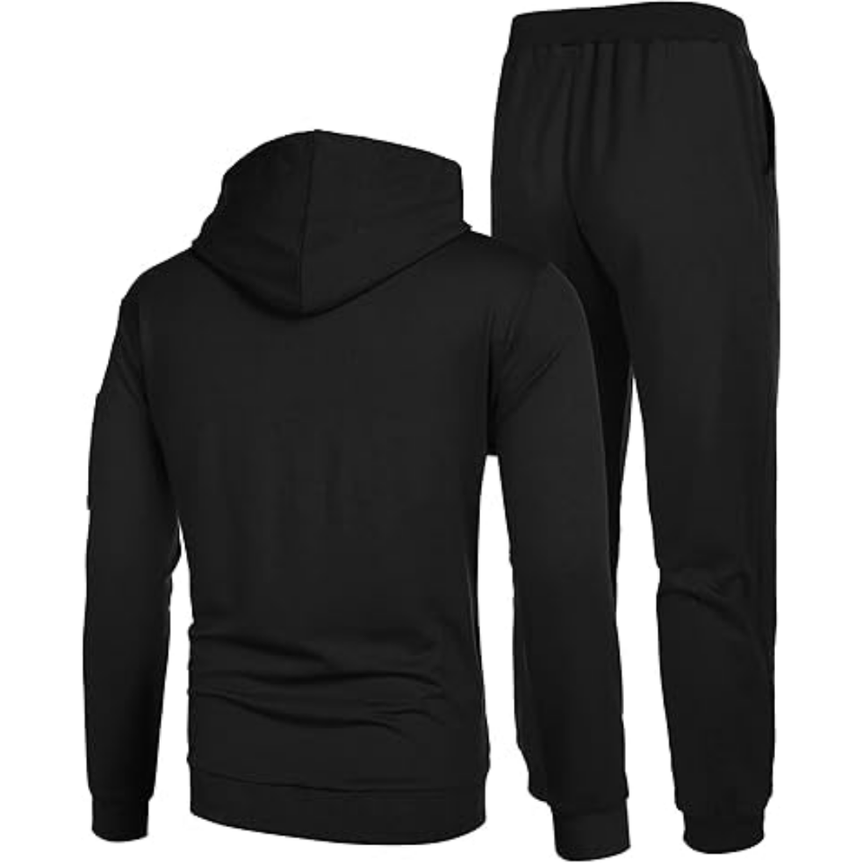 Men Black Solid Color Training Fitness Tracksuits High Quality Cotton Polyester Comfortable Tracksuit Sets