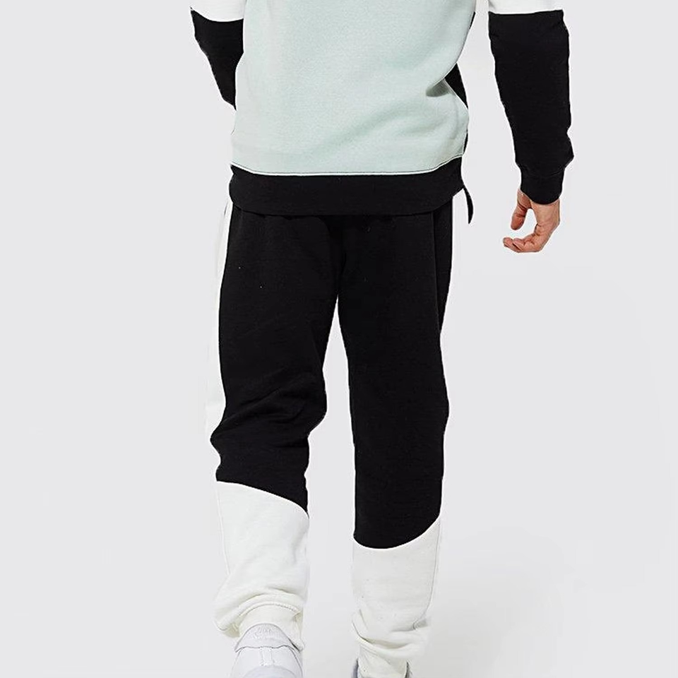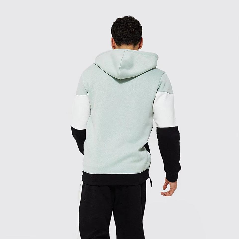 Men Black White Green Tracksuit Set Custom Logo Three Tone Zip Up Hoodie and Jogger Pants Sportswear Gym Outfit Wholesale