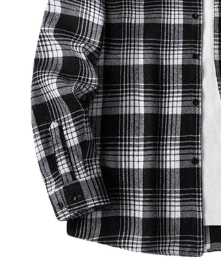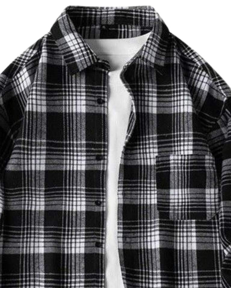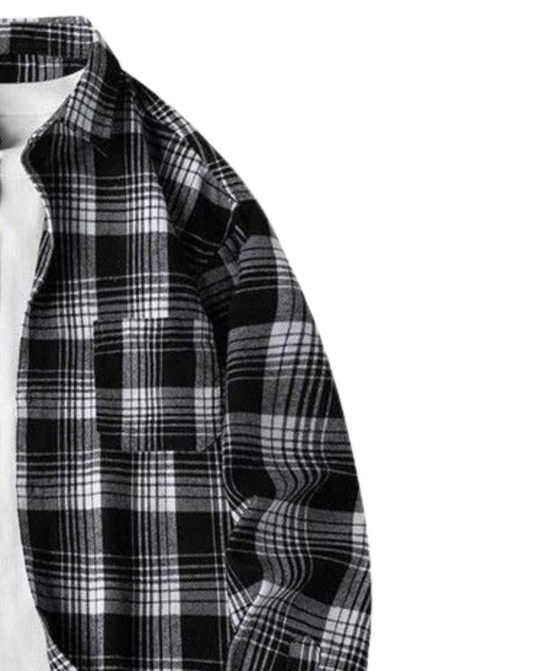 Men Black White Plaid Flannel Shirt Cotton Polyester Long Sleeve Button Down Casual Check Shirt Oversized Warm Fit