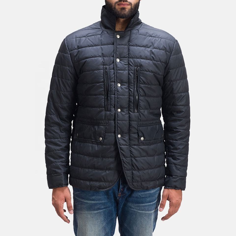 Men Bomber Jacket Quilted Windbreaker Customized in Black with Button Closure / Customized Men Quilted Bomber Jacket