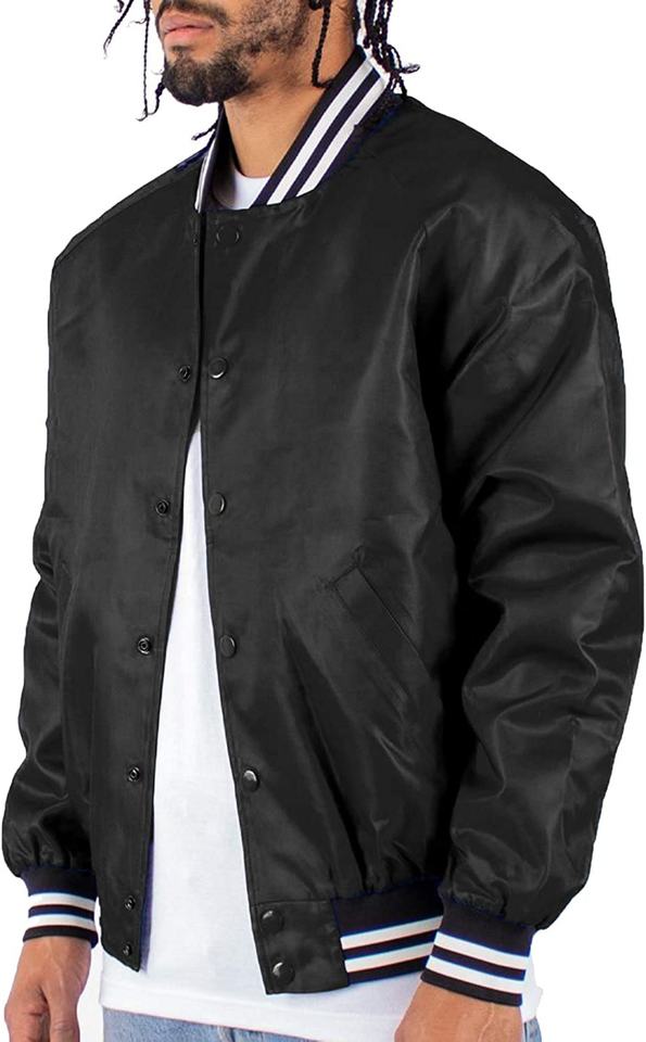 Men's Classic Design College Baseball Bomber Jacket with Stand Collar Padded Relaxed Fit Water Resistant