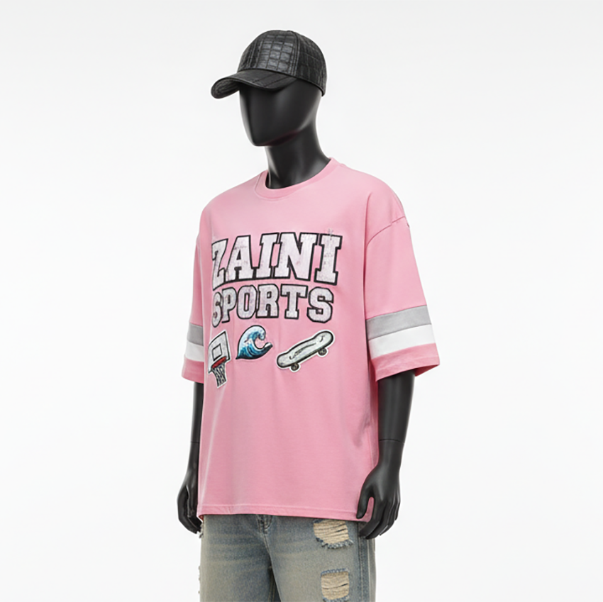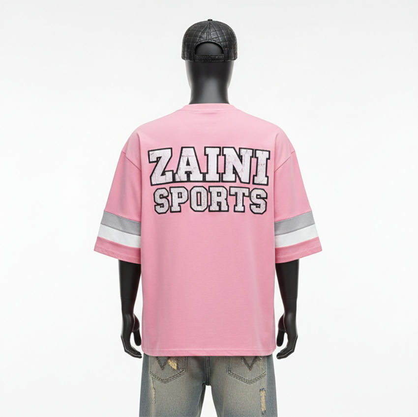 Men Boxy Fit T Shirt Premium Cotton Jersey 220 GSM Pink Color Sleeve Panel Design Screen Printed Custom Logo men's shirts