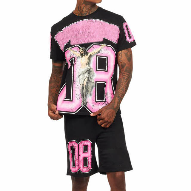 Men Breathable T Shirt and Short Set Casual Training Two Piece Sports Outfit for Gym Fitness Workout Summer Daily Wear