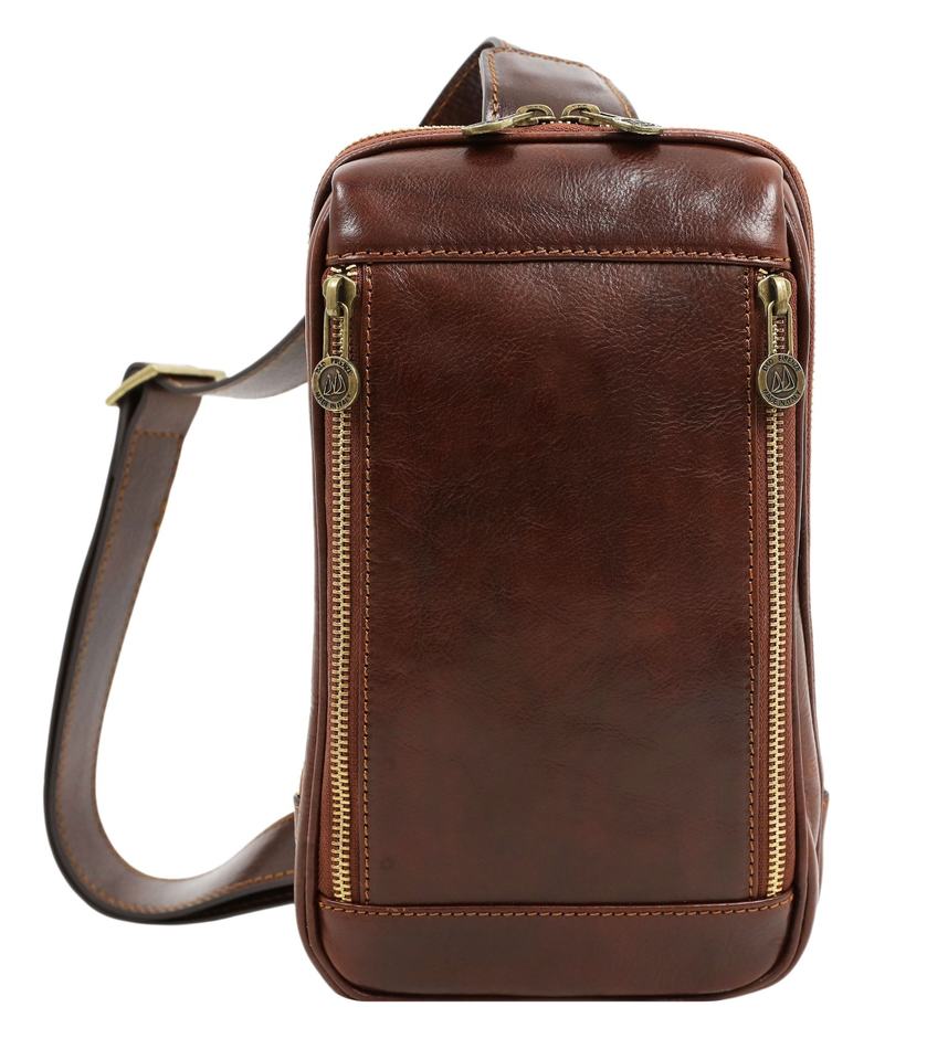 Men Brown Chest Genuine Leather Utility Anniversary Gift for Husband or Boyfriend Luxury Sling Crossbody Bag LCB-0025